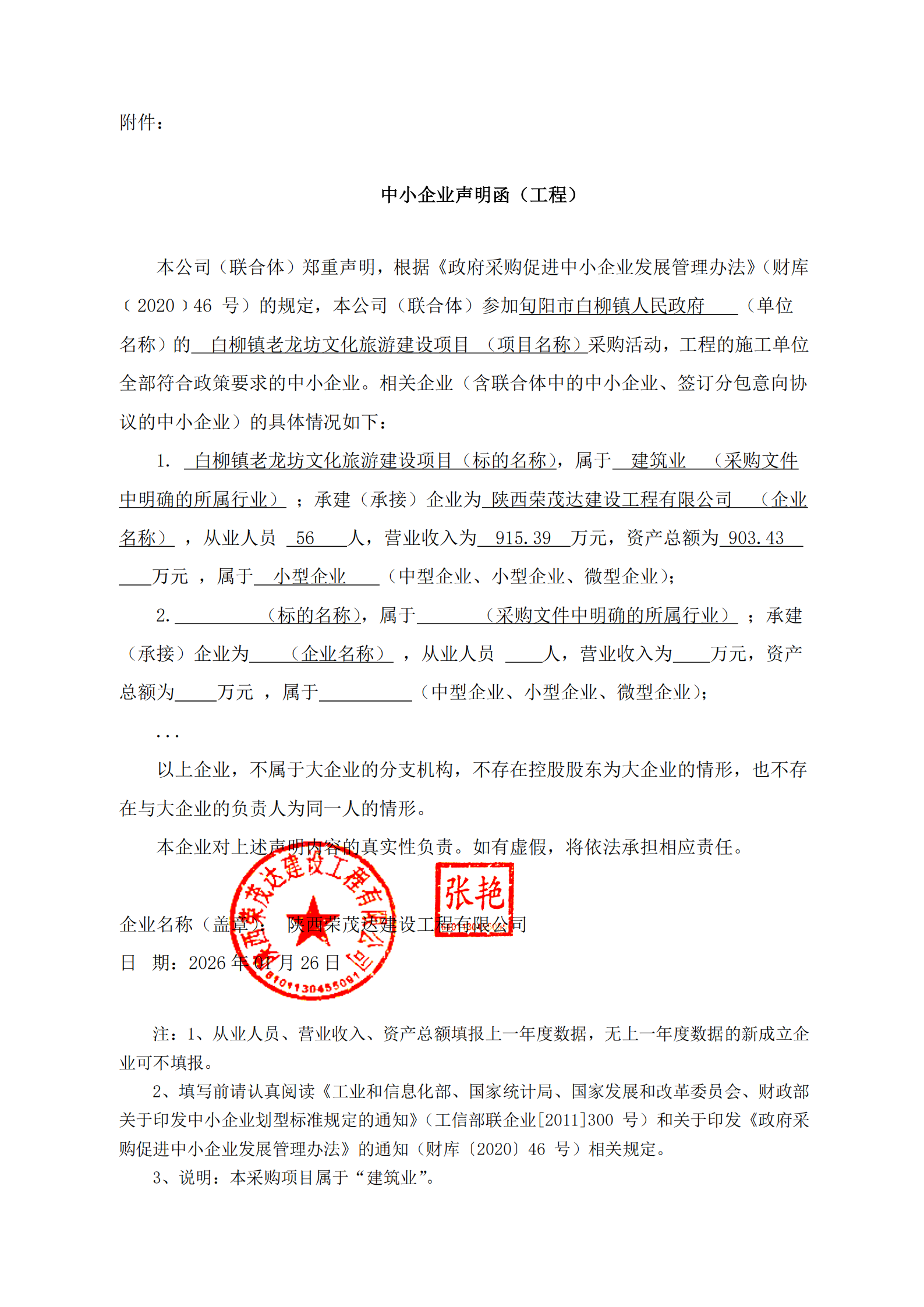 四、主要标的信息合同包1(白柳镇老龙坊文化旅游建设项目): 工程类(陕西荣茂达建设工程有限公司)