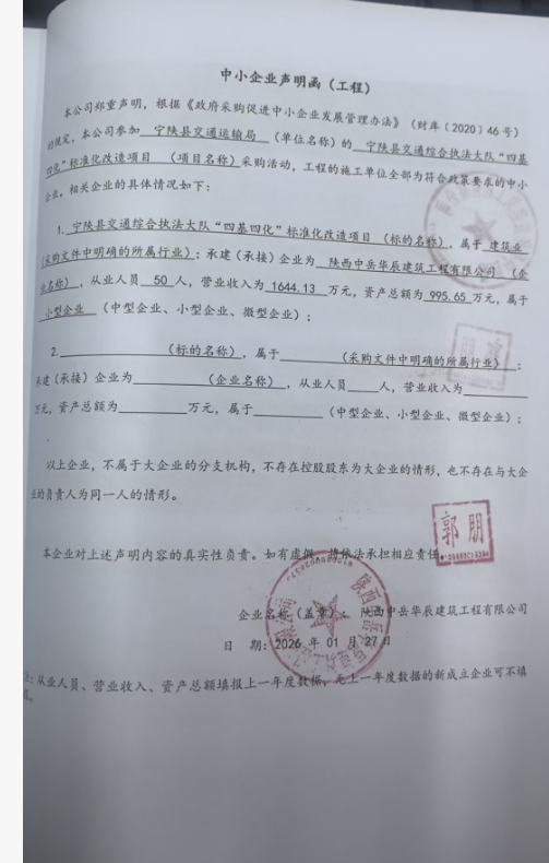 宁陕县交通综合执法大队“四基四化”标准化改造项目成交结果公告