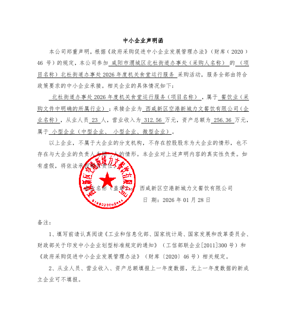 北杜街道办事处2026年度机关食堂运行服务成交结果公告