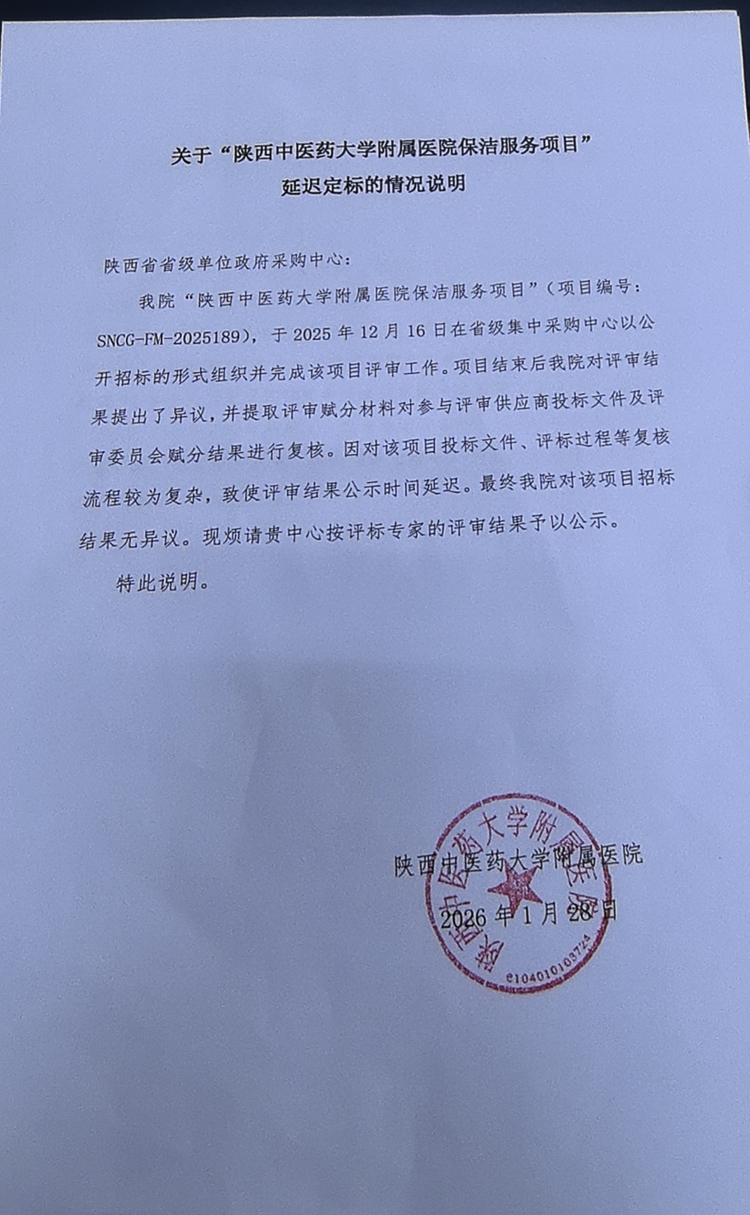 陕西中医药大学附属医院2025年保洁服务项目中标(成交)结果公告