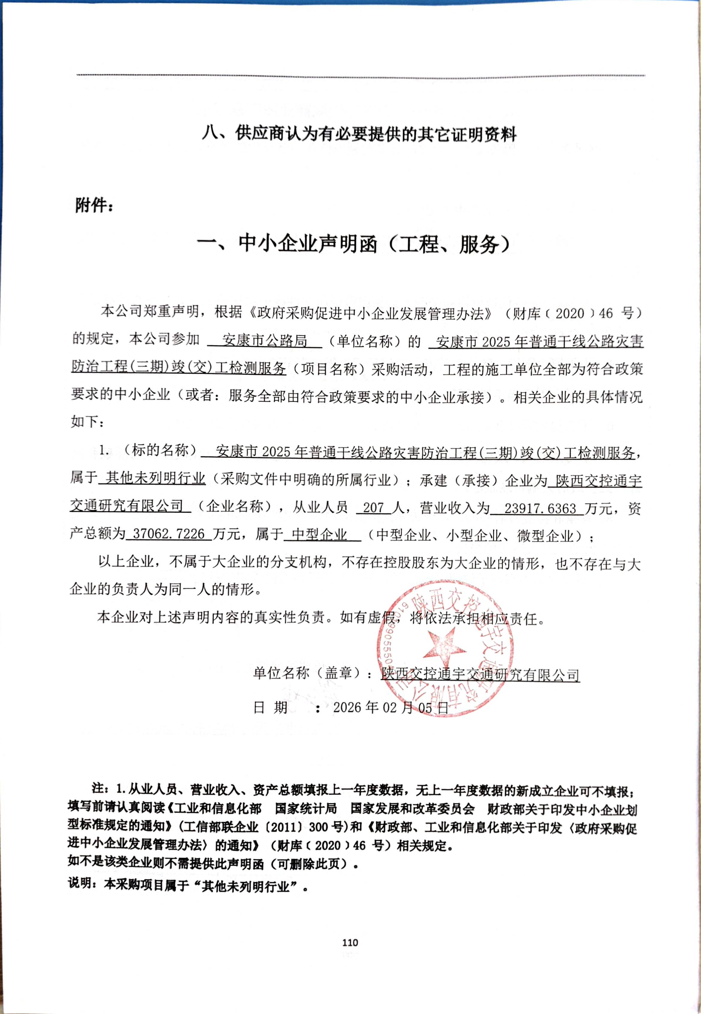 一、项目编号:SXZHZW-2026-002 二、项目名称:安康市2025年普通干线公路灾害防治工程(三期)竣(交)工检测服务 三、采购结果 采购包1: | 供应商名称 | 供应商地址 | 中标(成交)金额 | 评审总得分 | | 陕西交控通宇交通研究有限公司 | 陕西省西安市高新区西沣路长安国际企业总部27号办公楼 | 101,100.00元 | 90.50 | 四、主要标的信息 合同包1(安康市2025年普通干线公路灾害防治工程(三期)竣(交)工检测服务): 服务类(陕西交控通宇交通研究有限公司) | 品目号 | 品目名称 | 采购标的 | 服务范围 | 服务要求 | 服务时间 | 服务标准 | 金额(元) | | 1 | 技术测试和分析服务 | 安康市2025年普通干线公路灾害防治工程(三期)竣(交)工检测服务 | 对安康市2025年普通干线公路灾害防治工程(三期)施工范围内所有的路基工程、路面工程、桥梁涵洞工程、交通安全设施等其他工程进行竣(交)工检测。 | 详见采购文件 | 自收到甲方竣(交)工检测通知后起30日内完成委托事项并出具书面检测报告。 | 详见采购文件 | 101,100.00 | 五、评审专家(单一来源采购人员)名单: 六、代理服务收费标准及金额: | 代理服务收费标准及金额 | 本项目招标代理服务费用以安康市2025年普通干线公路灾害防治工程(三期)施工、施工监理及竣(交)工试验检测的招标代理服务合同签订价52650.00元收取,在代理招标工作完成移交资料汇编后由甲方一次性支付。 | | 合同包号 | 合同包名称 | 代理服务费金额(万元) | 收取对象 | | 1 | 安康市2025年普通干线公路灾害防治工程(三期)竣(交)工检测服务 | 0 | 采购人 | 七、公告期限 自本公告发布之日起1个工作日。 八、其他补充事宜 九、凡对本次公告内容提出询问,请按以下方式联系。 1.采购人信息 名称:安康市公路局 地址:陕西省安康市汉滨区巴山中路101号 联系方式:13772221766 2.采购代理机构信息 名称:陕西正恒忠卫工程管理服务有限公司 地址:陕西省安康市汉滨区江北大道汉城国际二号楼一单元1002室 联系方式:0915-3204657 3.项目联系方式 项目联系人:徐工 电话:0915-3204657 陕西正恒忠卫工程管理服务有限公司 2026年02月05日 |