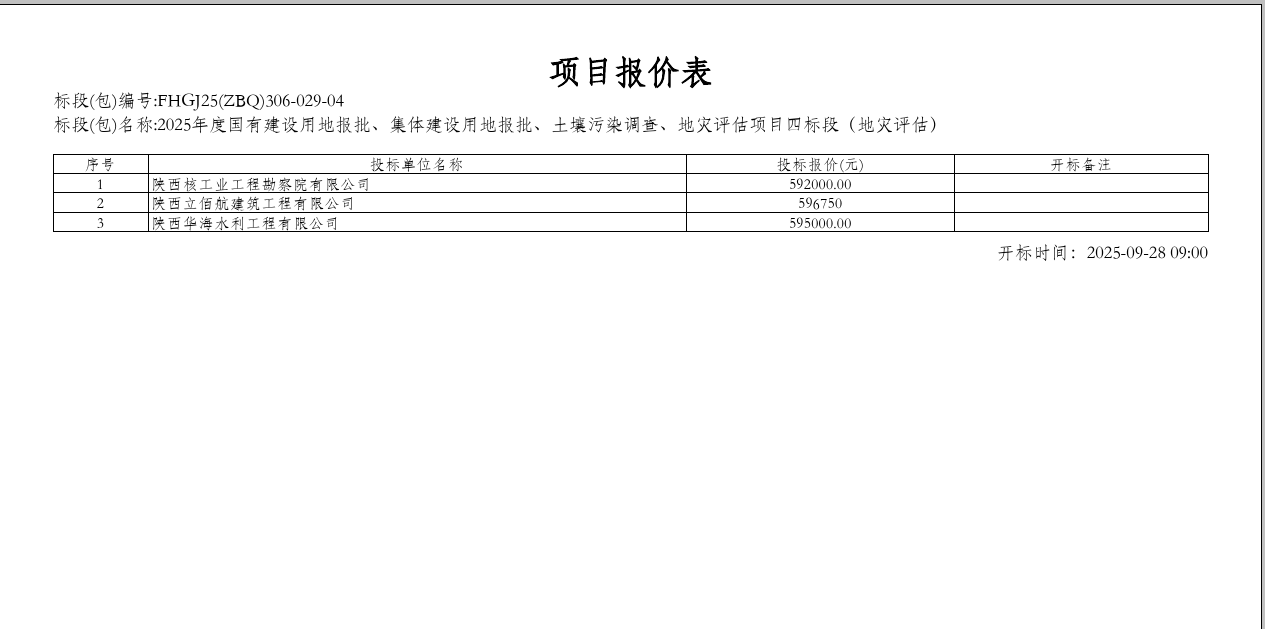 2025年度国有建设用地报批、集体建设用地报批、土壤污染调查、地灾评估项目中标(成交)结果公告