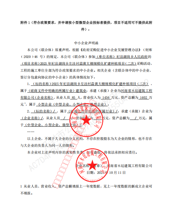 2025年杞县湖岗乡左洼村蒜黄大棚规模化扩建种植项目(二次)-结果公告