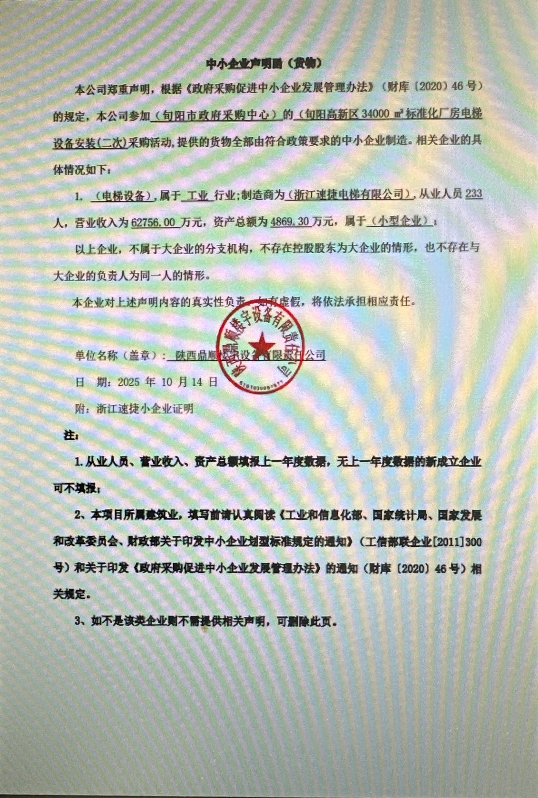 旬阳高新区34000㎡标准化厂房电梯设备安装(二次)采购结果公告