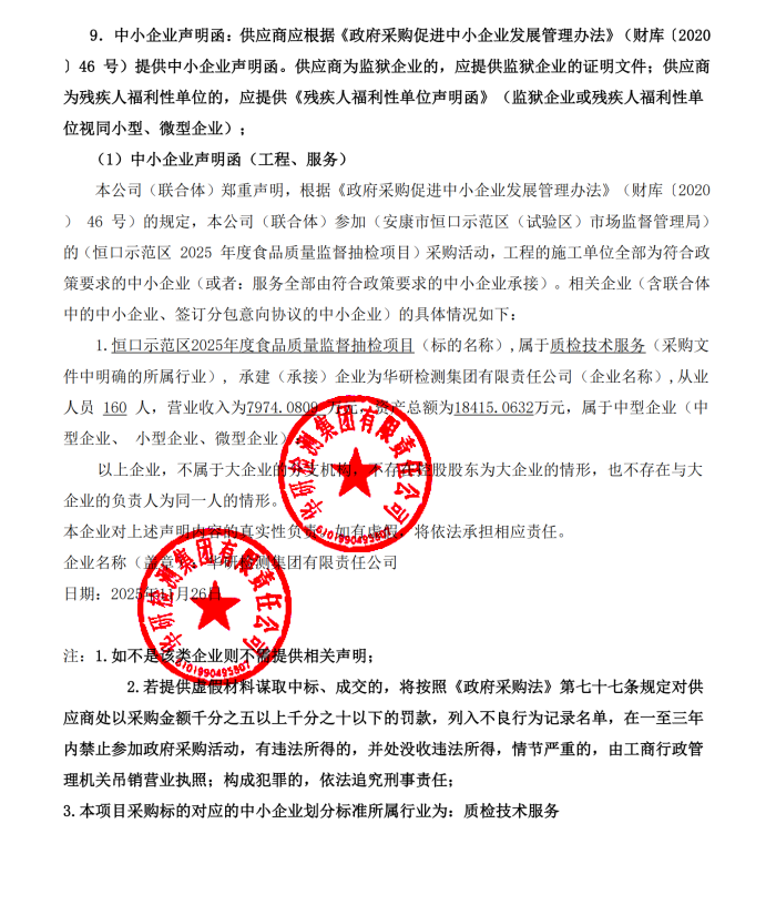 恒口示范区2025年度食品质量监督抽检项目中标(成交)结果公告