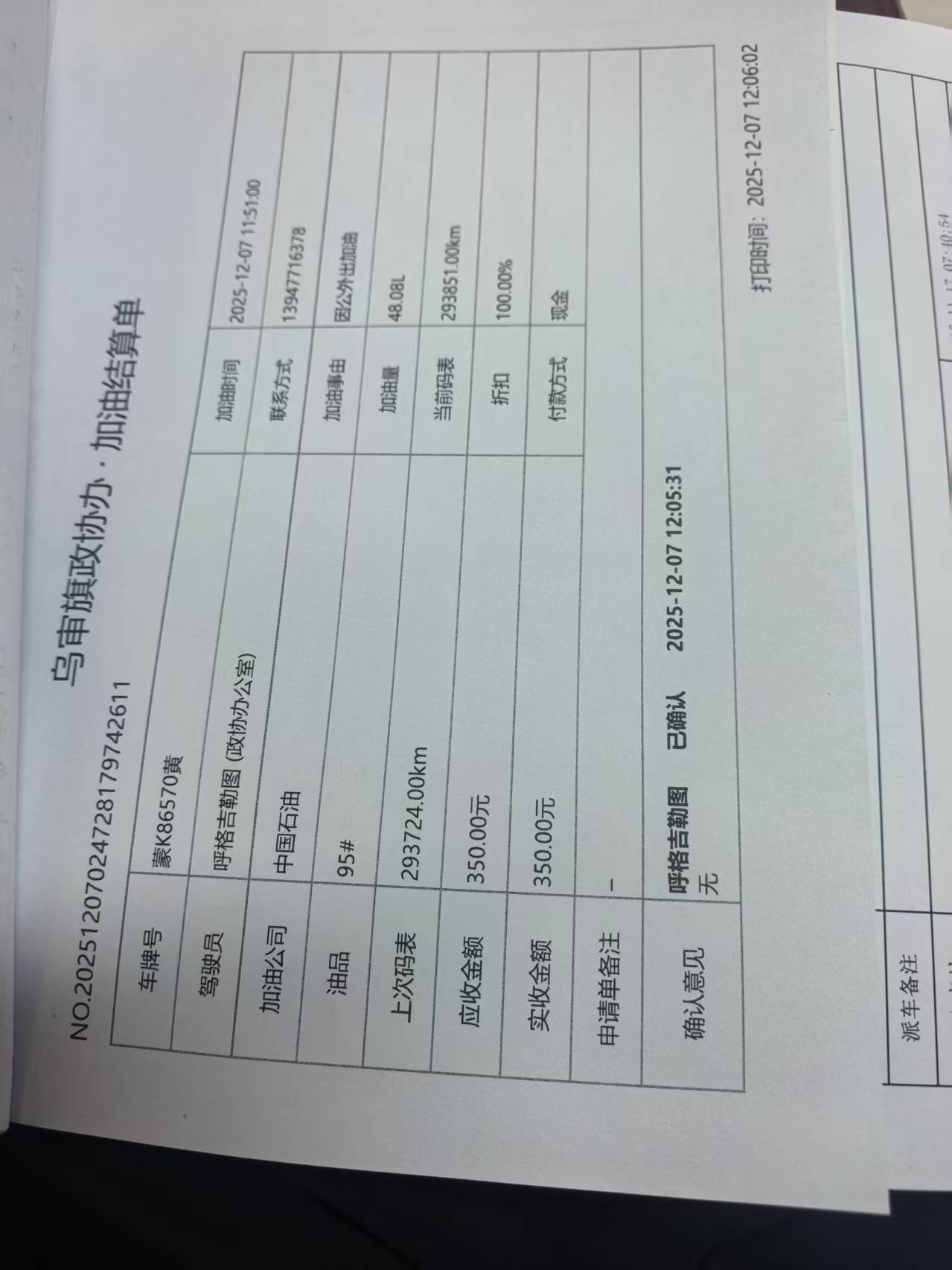 中国人民政治协商会议乌审旗委员会办公室燃油服务政府采购