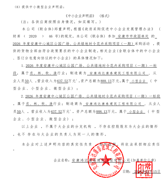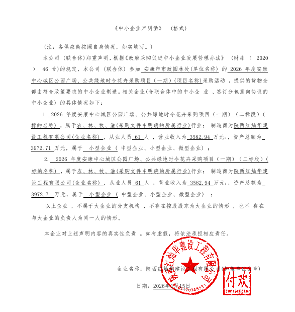 安康市市政园林处2026年度安康中心城区公园广场、公共绿地时令花卉采购项目(一期)中标(成交)结果公告