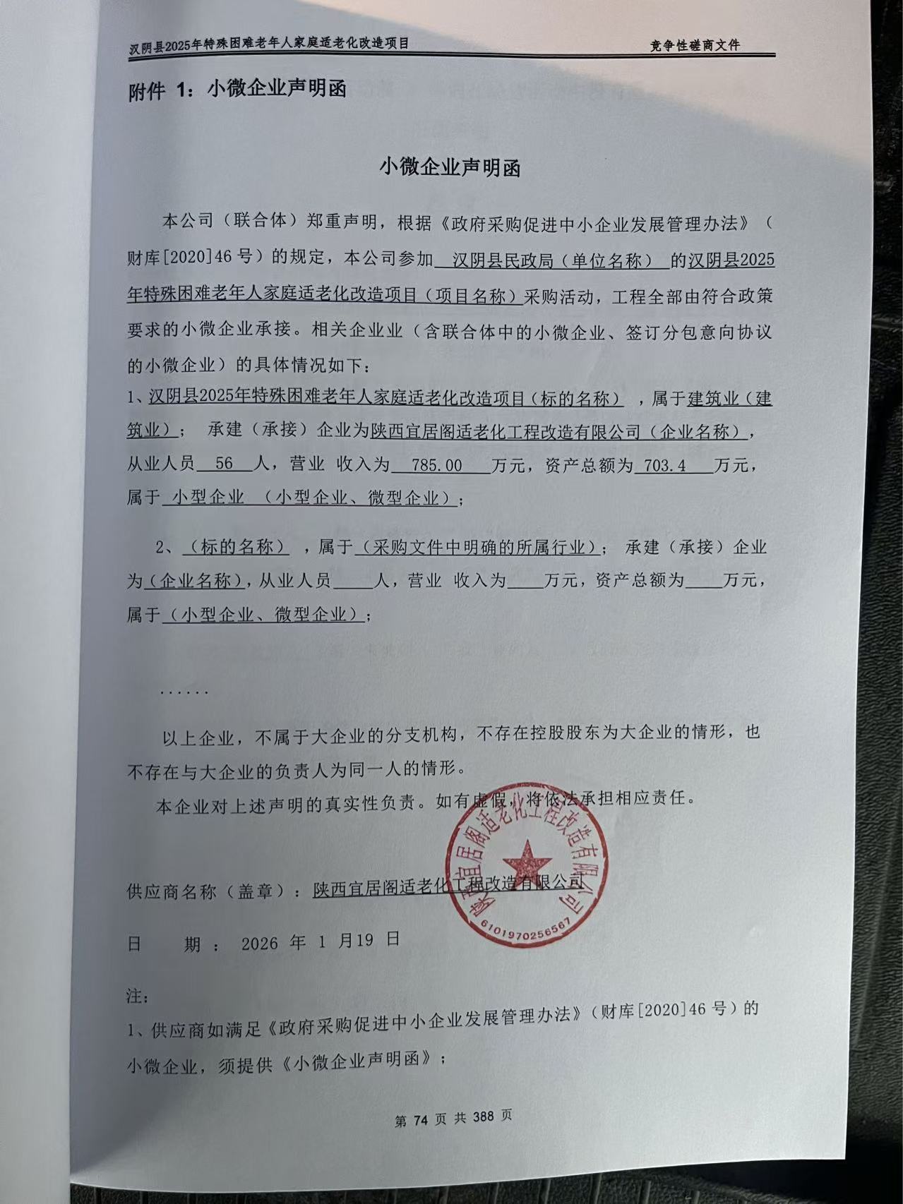 汉阴县民政局汉阴县2025年特殊困难老年人家庭适老化改造项目中标(成交)结果公告
