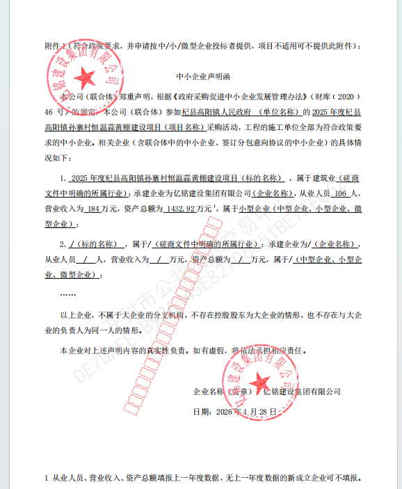 2025年度杞县高阳镇孙寨村恒温蒜黄棚建设项目-成交公告