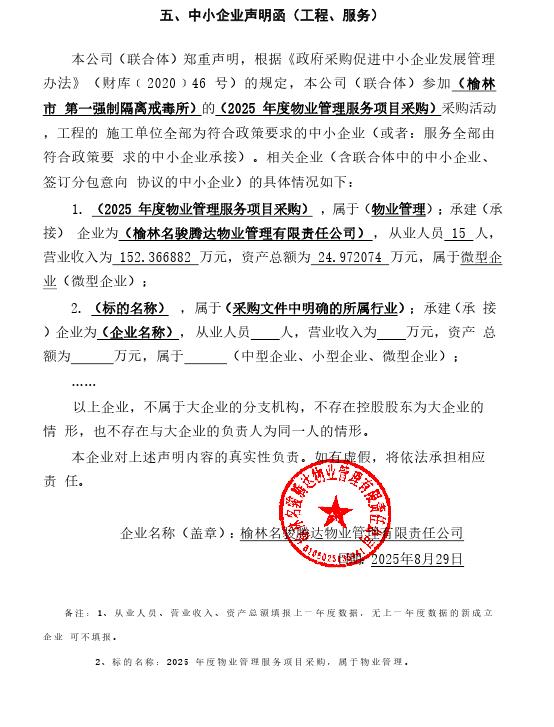 原公告的合同包1(2025年度物业管理服务项目采购)中标供应商(第1候选人):陕西逸品嘉禾物业服务有限公司,更正为:榆林名骏腾达物业管理有限责任公司。