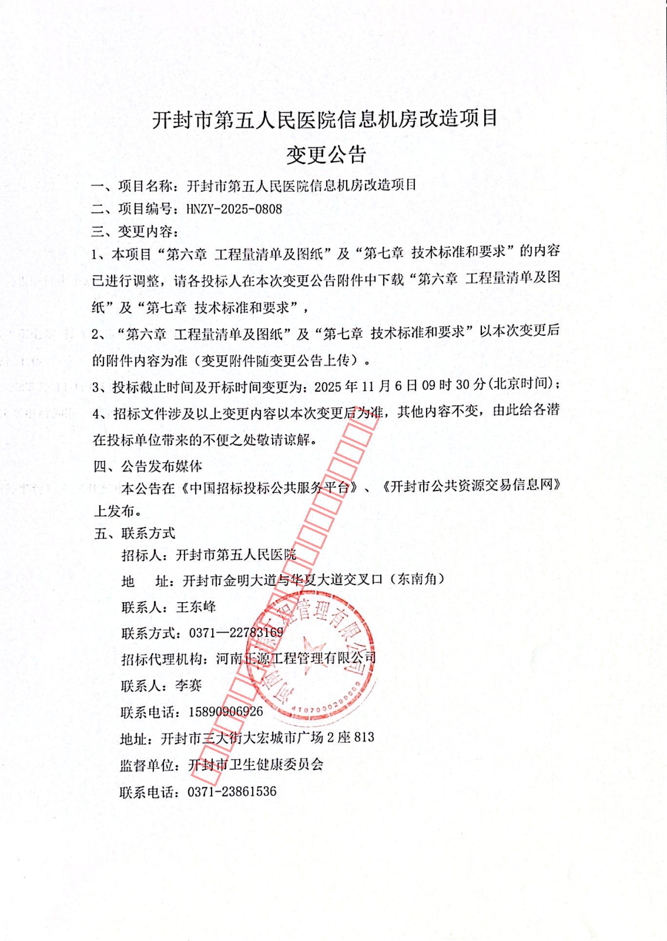 3 、投标截止时间及开标时间变更为: 2025年 11月 6日 09时 30分 (北京时间 );