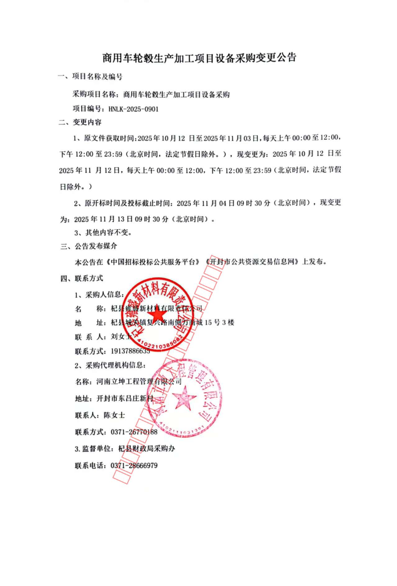 2 、原开标时间及投标截止时间: 2025 年 11月 04日 09时 30分(北京时间), 现变更为: 2025 年 11月 13日 09时 30分(北京时间) 。