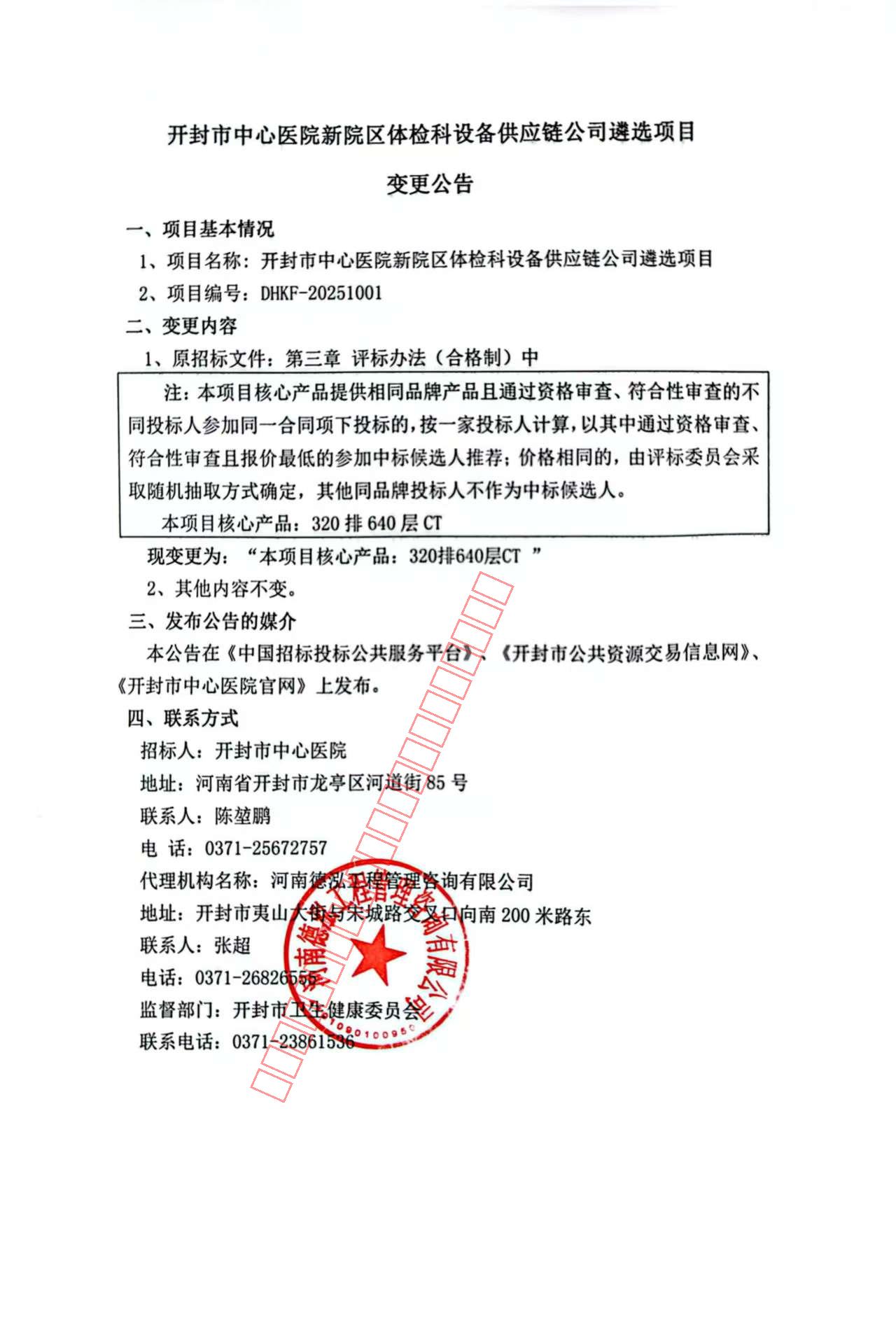 1 、项目名称 : 开封市中心医院新院区体检科设备供应链公司遴选项目